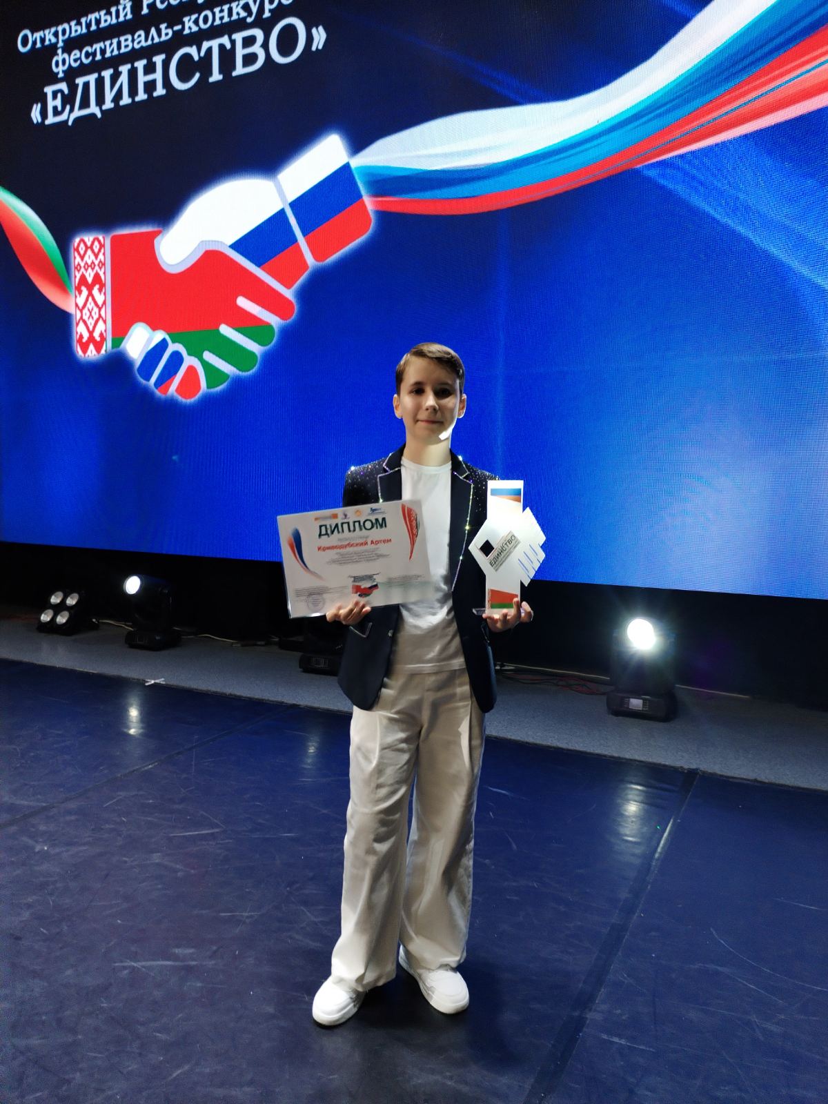 ПОЗДРАВЛЯЕМ!!!!! В своей номинации "Вокал эстрадный (соло)" Артём Криводубский стал Лауреатом II степени- учитель Алексей Саута. Поздравляем и желаем дальнейших достижений!!!!!